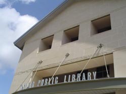 Library Hours: Monday 9:00 - 6:00, Tuesday 9:00 - 8:00, Wednesday 9:00 - 6:00, Thursday 9:00 - 8:00, Friday 12:00 - 6:00, Saturday 9:00 - 2:00.